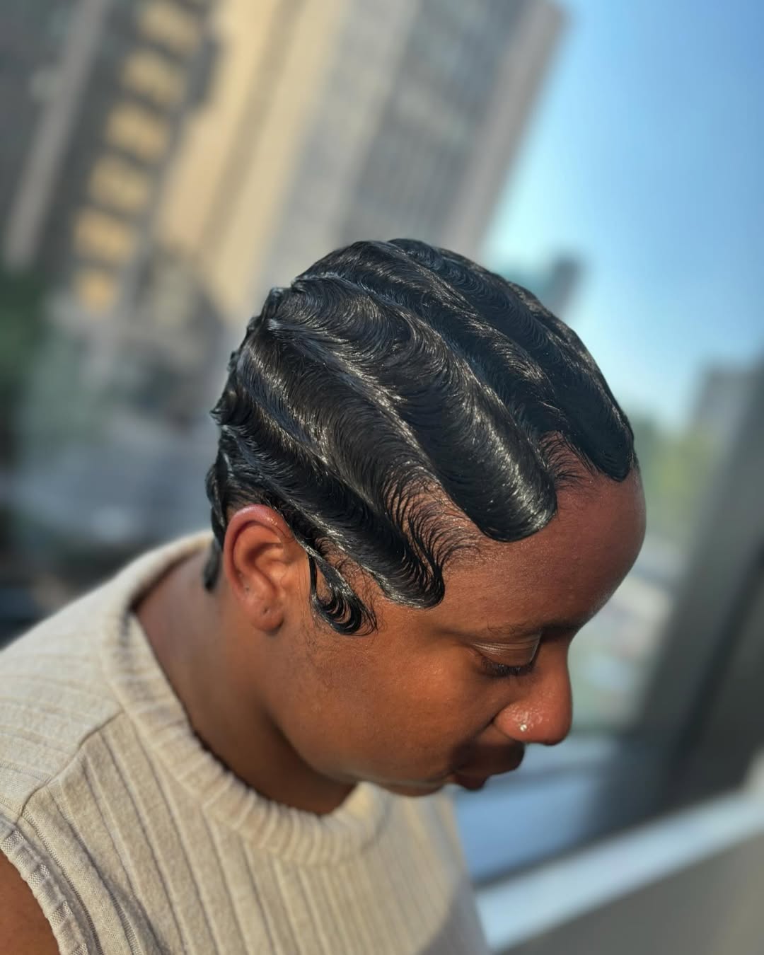 Finger waves were a hairstyle that was glamorous and added sophistication to a person. Hair was styled into S shapes near the head with the help of a comb and gel. Finger waves were popular among musicians and performers of the time, and needed accuracy and a stable hand. This was a good style when attending a formal event or on the stage, as hair had a sculpted and smooth finish. Although they are rather high-maintenance, the finger waves are a trendy option when it comes to retro-themed style or a modern variation. Nowadays, they are frequently combined with fades or tapered sides, combining the old 60s style with modern tendencies.