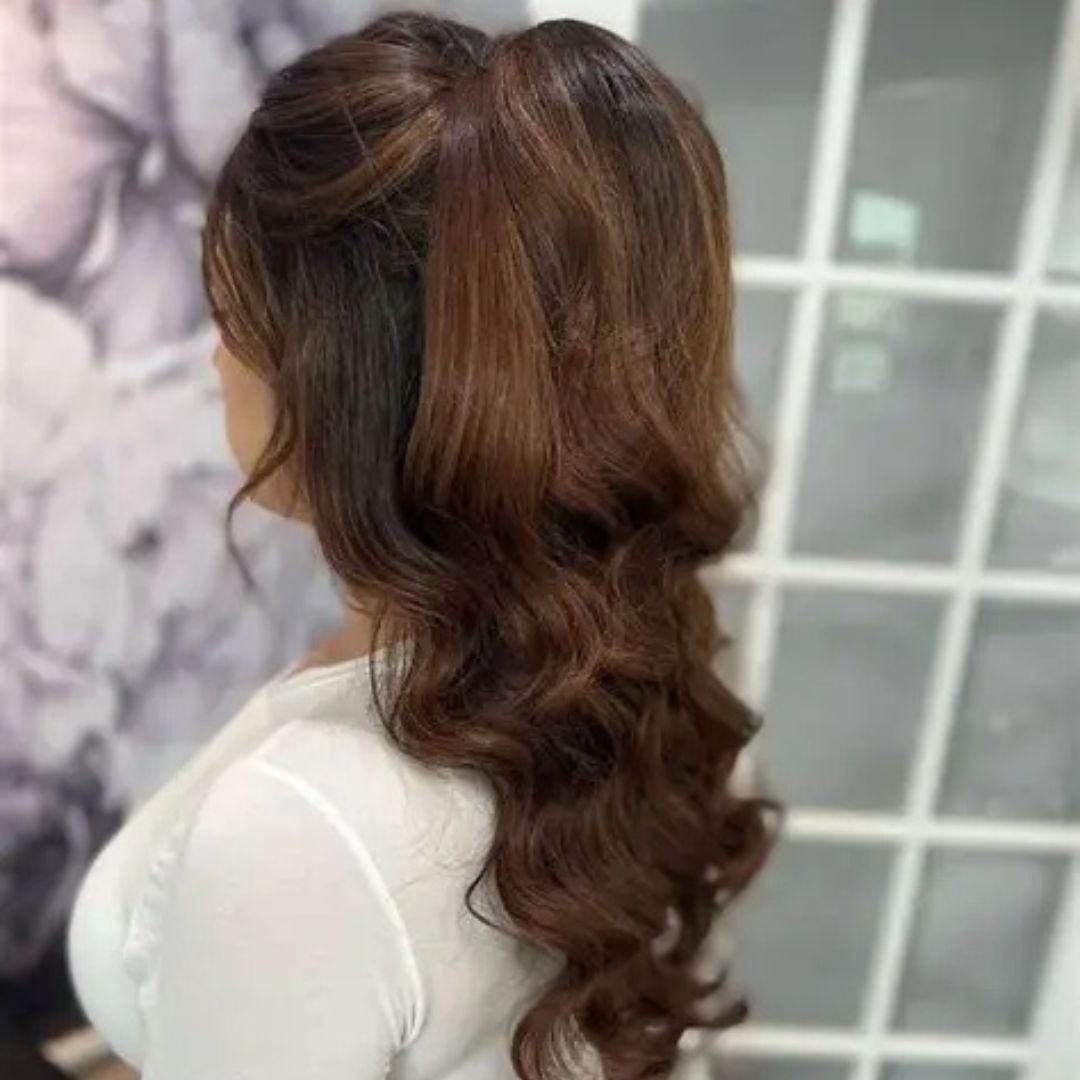 The half-up blowout is both a volume and a versatile blowout. This is done by pushing the top part of the hair down and leaving the rest of the hair massive and full of volume. Blow-dry, with round, blow-dry at the ends, and lift at the roots. The style beautifully cuts the face and leaves no hair on the face, which is ideal in an official event, a party, or even a wedding. Shine spray improves shin,e and a soft hairspray keeps the style in place. The half-up blowout is charming but sophisticated and provides the optimal combination of casual and elegant, and is preserved in the classic supermodel iconic style of the 90s.