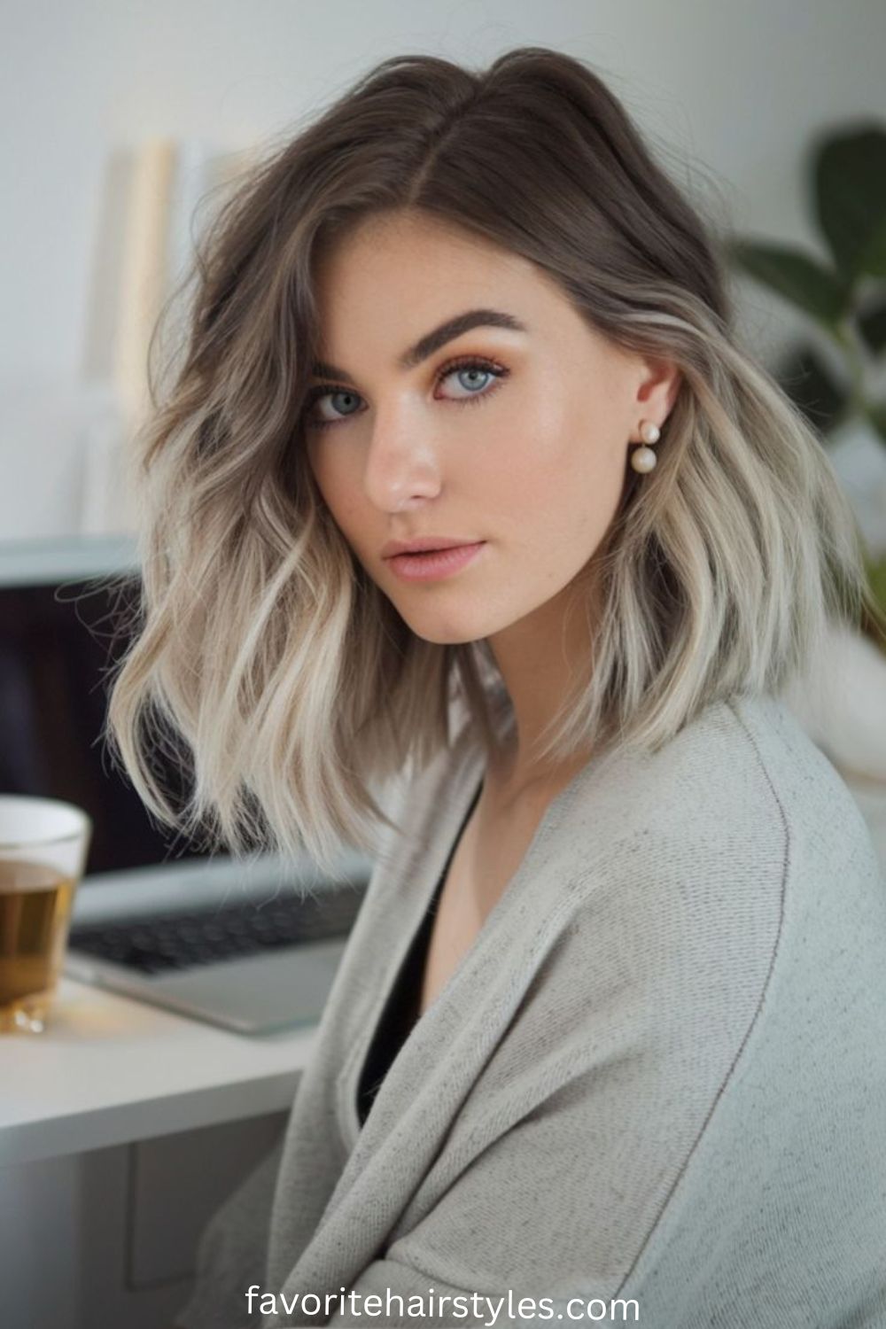 Ash Blonde Balayage Hair Color work beautifully on a lob (long bob), especially when styled with beachy waves. The tousled texture amplifies the dimensional color, making every layer pop with cool-toned brightness.