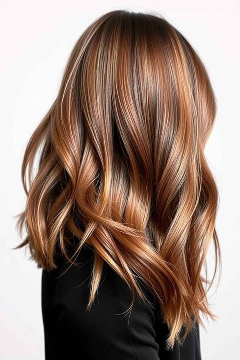 Adding subtle caramel highlights to an ash brown base creates a warm-cool contrast. It brings a multi-tonal look that flatters all face shapes and adds a soft glow.