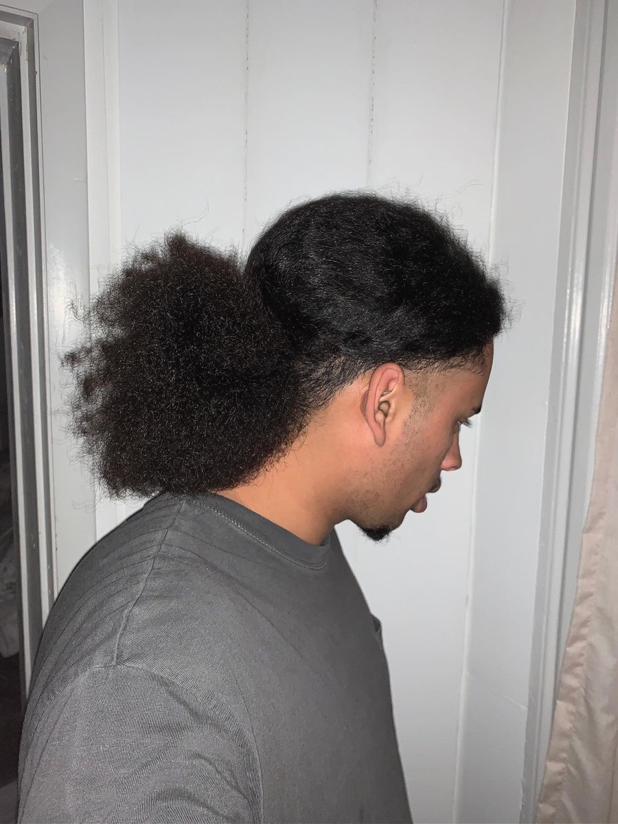 The natural texture of the Black hair is embraced by a curly ponytail. The hair is collected loosely on the back side and left to cascade loosely, thereby giving a carefree and easy look. The frizz-free and curly style is maintained by curl-enhancing creams and moisturizers. This ponytail is suitable for both medium-length and long hair and is capable of switching between casual events and formal ones that are semi-formal. It is a low-maintenance texture, which emphasizes hair volume and natural beauty and minimizes the number of breakages, which are caused by the constant manipulation. The pony-tails are curly and present an image of individuality as well as confidence, and this makes it the best style to be worn by men who wish to have a stylish but casual appearance.