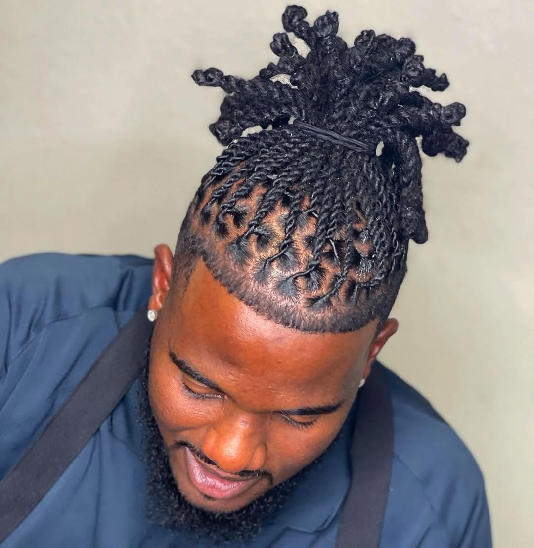 Half-up ponytail is a modern and versatile style that Black men wear. The highest part of the hair is pulled back with the rest spilling down to give a balanced and fashionable appearance. It is a style that suits medium to long hair, and this gives men the opportunity of enjoying length without actually having to invest in a traditional ponytail. It is ideal in casual or semi-formal events and could be fades,braidsds or twists to give it a more flair. This is a stylish yet convenchoice forforan everyday hair, and this is achieved by moisturizing it and trimming it now and then to maintain the health of the hair.