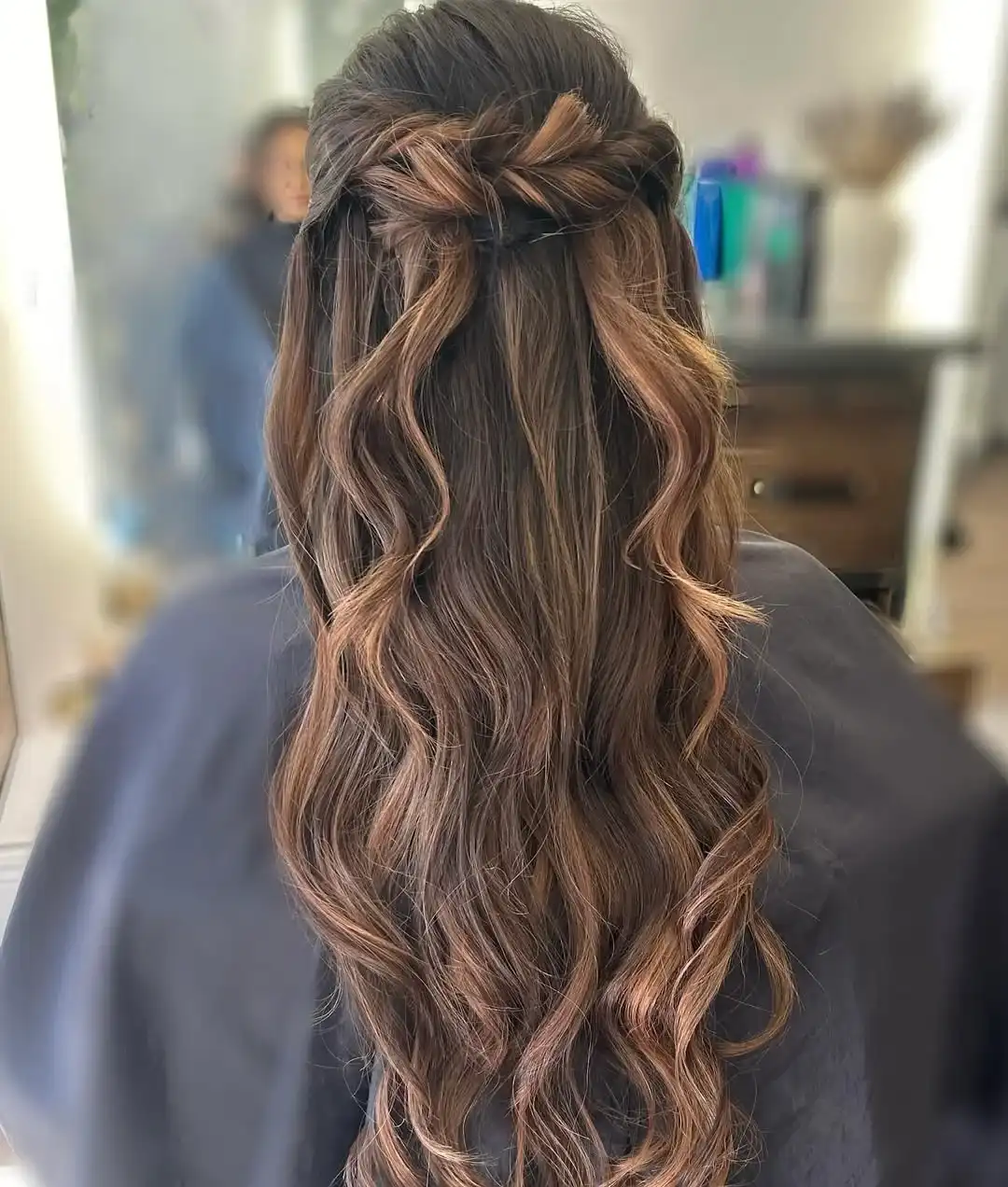 Thehalf-upp twisted crown is a romantic and beautiful hairstyle, which is suitable for a formal event. This fashion entails taking two portions of hair that are located on the front side and twisting them to the back of the head, where they are pinned together. The remainder of the hair may be cut into soft waves or curls. This is one of the black tie hairstyles of medium hair,r which works best with those who desire an updo and loose hair at the same time. It gives it a light and feminine touch, though keeping the hair off the face.