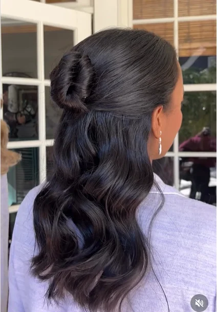 The half-up bun, which is polished, is a fashionable and at the same time stylish hairstyle and can be used in formal events. The upper part of the hair is collected in this style and made into a small bun, and the other hair is left cascading in loose waves. This gives it a well-balanced appearance that is contemporary and elegant. This is one of the black tie hairstyles that can be used in medium hair. It is a good hairstyle that allows people to achieve a stylishand comfortable hairstyle that is nevertheless professional.