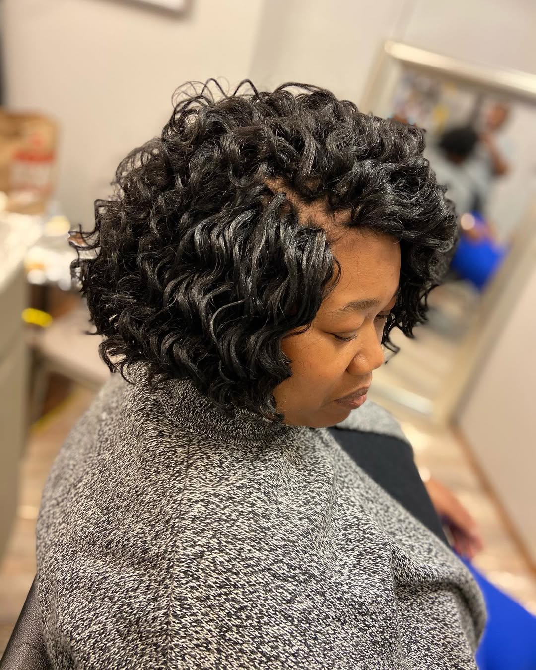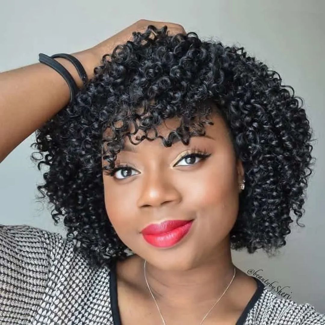 The vintage curly bob crochet is a hairstyle that gives bounce and volume to your appearance and is a classic. This style is ideal for women who prefer a light-hearted and youthful effect, soft and medium-sized curls to be cut in a fashionable bob shape. It is versatile, fits well on any shape of face, and also fits in informal and official events. The curls have a natural flow and bulk and make your hair look thicker. A lightweight mousse should be used to keep the curls in place and frizz-free to sustain this appearance. Combine it with an oversized pair of earrings to be able to add a very stylish touch to it and make a statement wherever you go.
