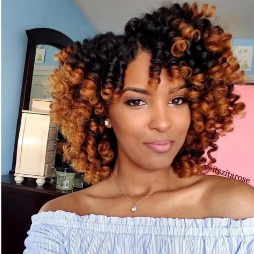The sleek, straight bob crochet is the best option if you are looking to have a polished, professional, and elegant appearance. This style looks like a silk press and not a cover around your natural hair. It is perfect in the workplace or at a formal occasion, or simply a day-to-day wear when one has a lot of style in mind. The straight bob is a great fit for the face, and it can be used with middle or side parts. At night, wear a satin scarf to keep your hair smooth and shiny. To add a splash of color, adding burgundy or honey blonde highlights would be nice to add more personality and layers to the style, but still maintaining simplicity and chicness.