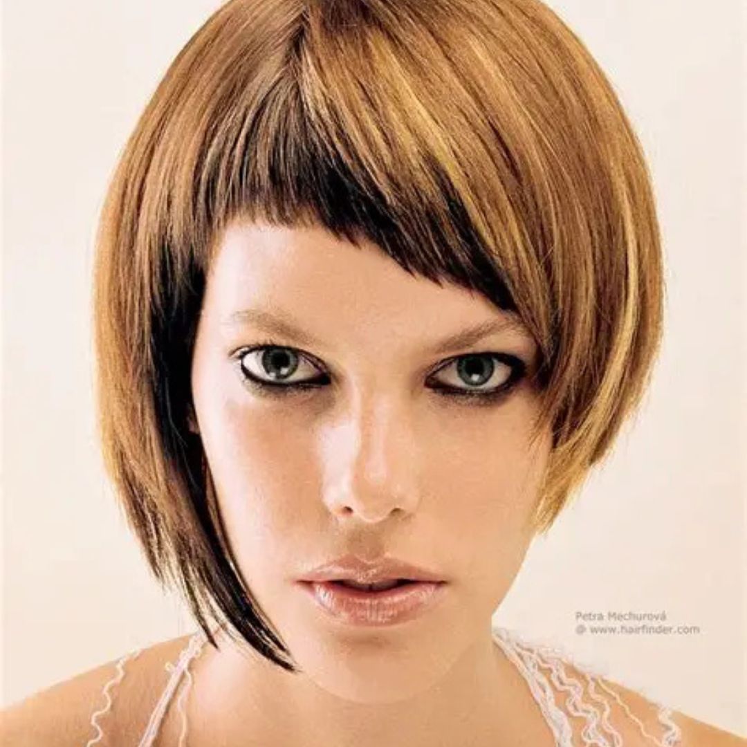The traditional straight bowl cut with squat bangs is an old hairstyle that suits the face perfectly with straight lines. This style suits well with naturally straight hair and provides a sleek and polished look. The harsh bangs create more emphasis on the eyes, and the rounded bowl shape creates symmetry. It is a good classy option to use in workplaces, casual functions, or for occasions. Combining it with a polished finish or a low number of layers makes it more of a modern piece. The regular trims are necessary to keep the shape clean. The style fits perfectly oval-shaped faces, square-shaped faces, as well as heart-shaped faces.