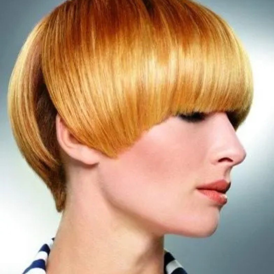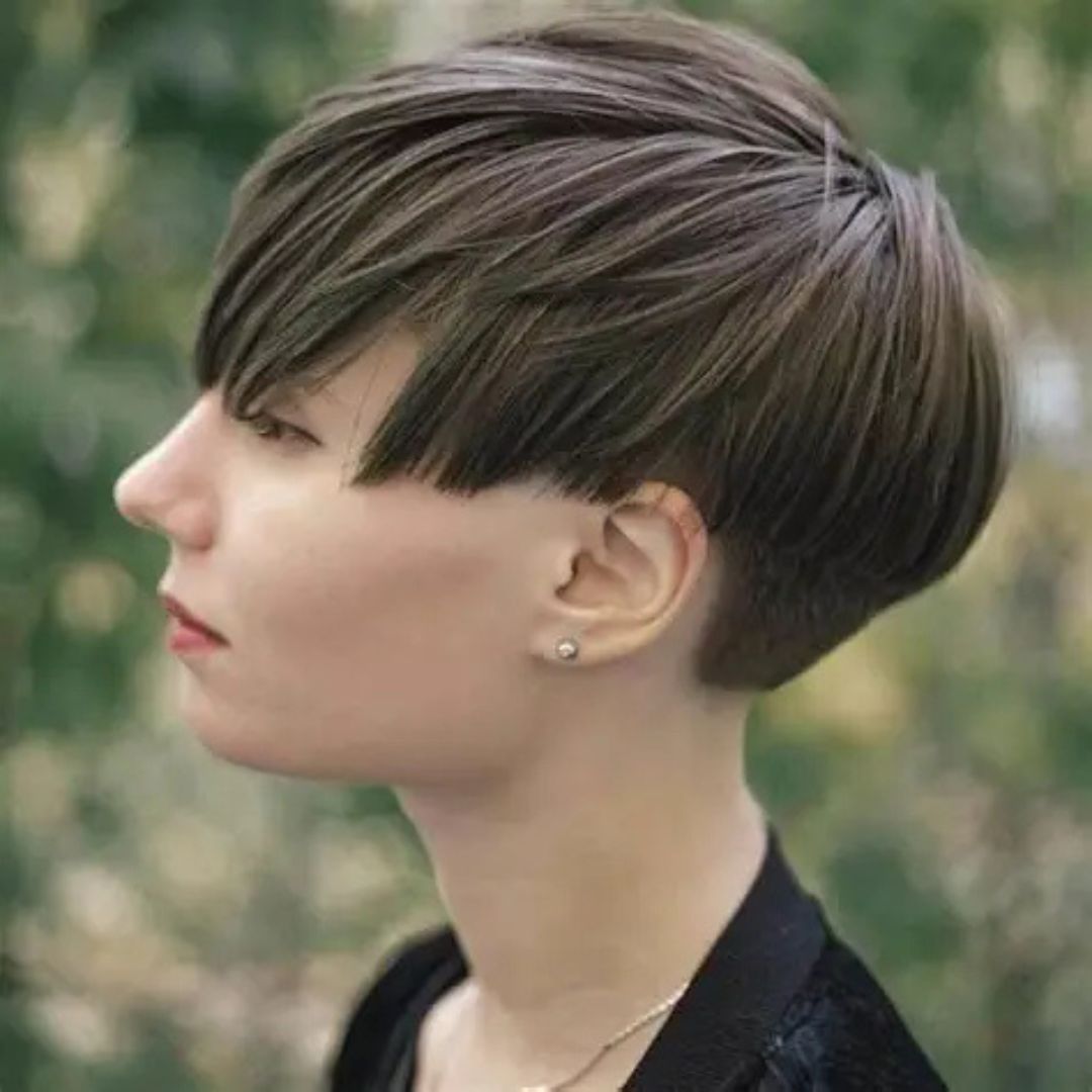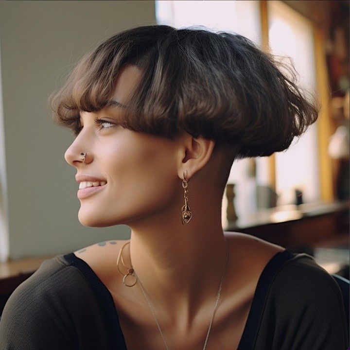 A short bang, which is an undercut bowl, is a bold and contemporary hairstyle that is both sharp and elegant. The undercut minimizes volume on the side or back and focuses on the bowl shape that is rounded and ends with short and straight bangs. It is suitable for thick or coarse hair and allows creativity in terms of texturing the top or adding color. Small bangs are so bold, and the eyes have been highlighted. It is a haircut that fits people who are confident and do not have time to bother with their hair, but still desire a trendy look. The undercut and the bangs require frequent trims. One can have it straightened, curled, or left messy.
