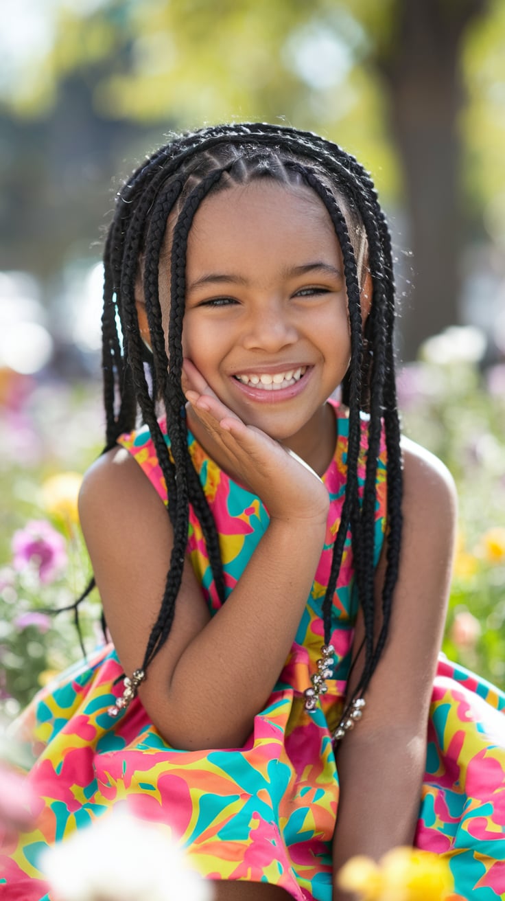 Classic box braids will always have a special place in my heart because they’re just timeless. Whenever I see kids rocking them, I instantly think of neatness and that simple beauty that never goes out of style. Honestly, the best part is how they keep hair tucked away and protected without needing constant touch-ups. I’ve done this style for my niece, and the smile she gave after checking herself in the mirror was priceless. They’re low-maintenance and still super stylish, which is a win for parents.