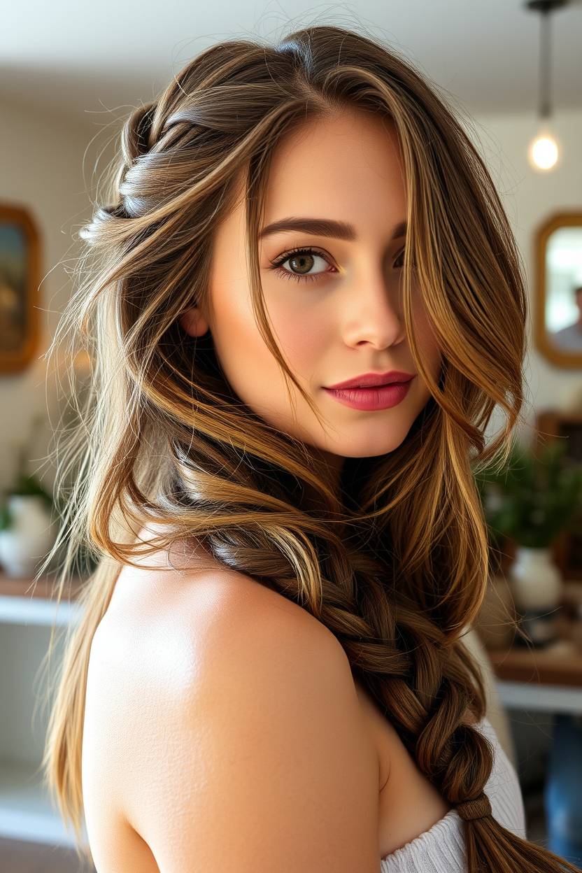 To do it, I usually start with a loose three-strand braid, keeping it slightly messy for volume. You can tug on sections gently to make it fuller. I also like to leave a few strands loose near the temple; it softens the jawline. In my opinion, it’s perfect for casual outings or even semi-formal events. People always ask if it’s difficult, and honestly, it’s pretty forgiving.