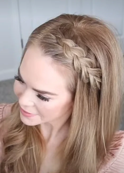 French braided headband is an all-time classic and classy headband. Begin by which you cut a small piece of hair on one side of the forehead and doing a French braid along the hairline. Keep on braiding across the head till you reach the other ear, then hold it in place using a little elastic or bobby pins. Keep the remaining hair down to create a natural, flowing appearance. This hairdo suits hair of any length and is ideal for school, a party, or just an outing. Its clean and trim look renders it applicable in daily use and on other occasions as well.