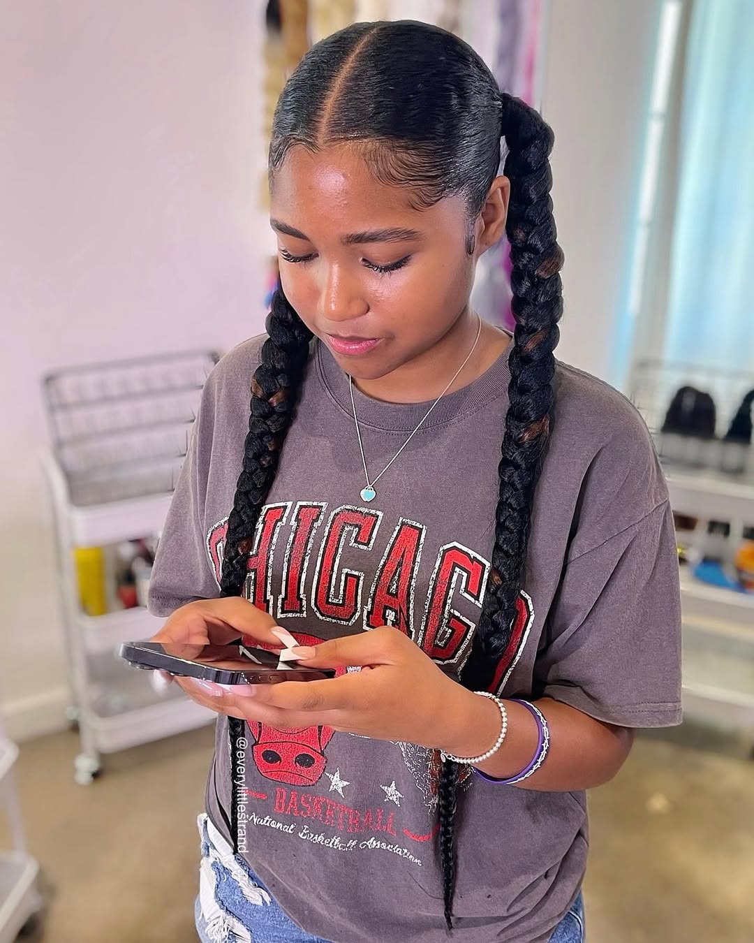 Pigtail braids or the double braids are childish, playful,l and fun. The hair is separated into two covers and each part is plaited in a symmetrical manner. These may be traditional three-strand, fishtail, or Dutch braids of their choice. The pigtail braids can basically be worn to school, sports events, or even during thematic events. They keep hair in place and under control,l as well as provide a vibrant and energetic feel. There are accessories, such as hair ties in colors, ribbons, or clips, to give the outfit a personality. The use of double braids is a perfect hairstyle that can be worn by a girl who wants to have a fashionable but practical hairstyle that will not become messy during the day.