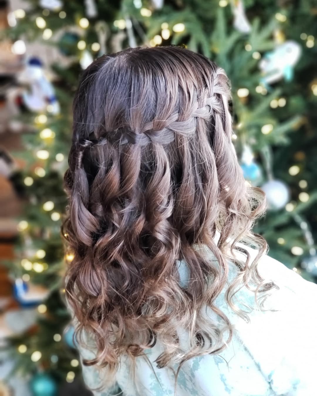 The waterfall braid is fine and complex, which enables the strands to flow down gracefully, forming a waterfall. Beginning on one side of the head, one is to braid the hair section,s leaving strands to pass through, which will result in a gentle and romantic appearance. The hairstyle is ideal among girlatin parties, weddings, or other celebrations. It is most applicable to long hair and can be used together with curls, waves, or half-up styles to make it more flattering. The decorative pins or flowers are added to increase the visual appeal. Waterfall braids are feminine, graceful, stylish, and attractive.