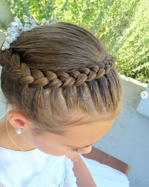 Crown braids are worn over the head, forming a halo that is very elegant and sophisticated. This hairstyle is perfect for weddings or even festive occasions, as it makes any outfit a royal outfit. The braid may be done in a single sustained braid or by using two side-braids at the rear of the head. The style can be added with some delicate accessories such as flowers, pins, and beads to make it look like a fairytale. Crown braids are suitable for girls with medium to long hair, i whetherit can be done tight and in a structured manner or be soft and romantic, making it a versatile one to use at any event.