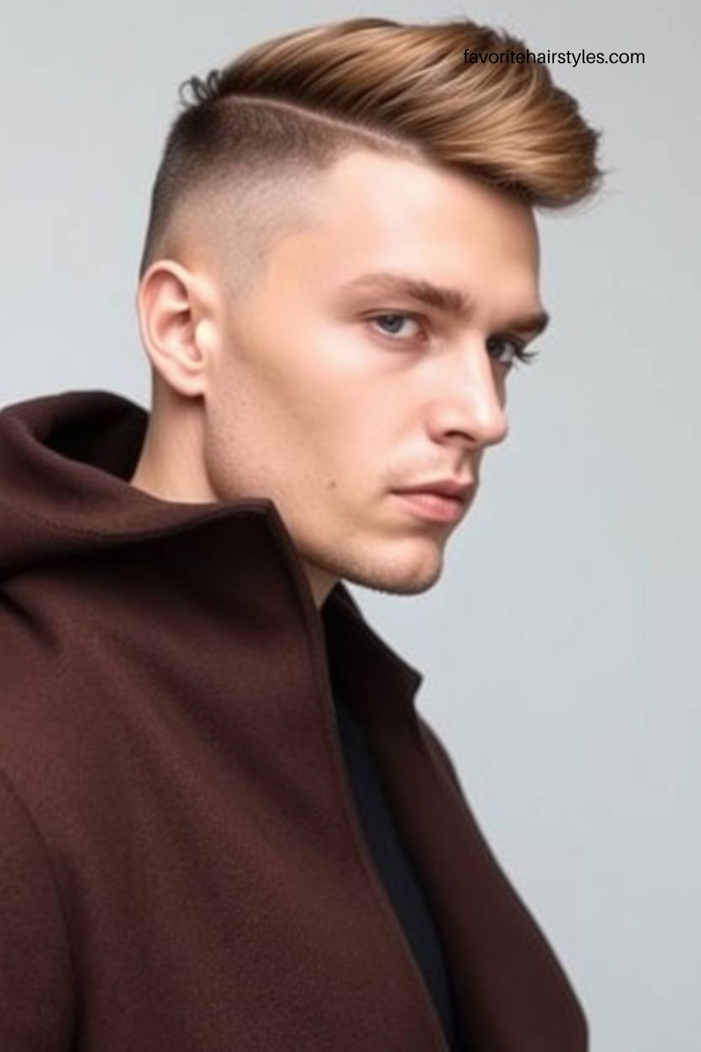 A classic fade with caramel brown hair creates a smooth and modern look. The gradual blend from darker roots to lighter ends adds contrast and a polished finish.
