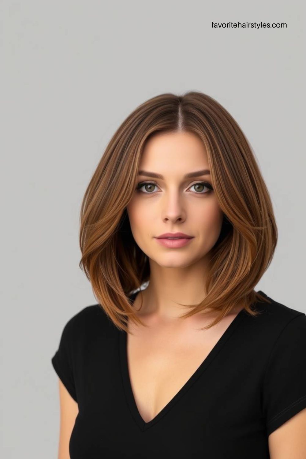 A caramel brown bob with layers is a timeless and flattering hairstyle. The layers add movement and shape to the bob, while the caramel brown color gives it a rich, warm finish.
