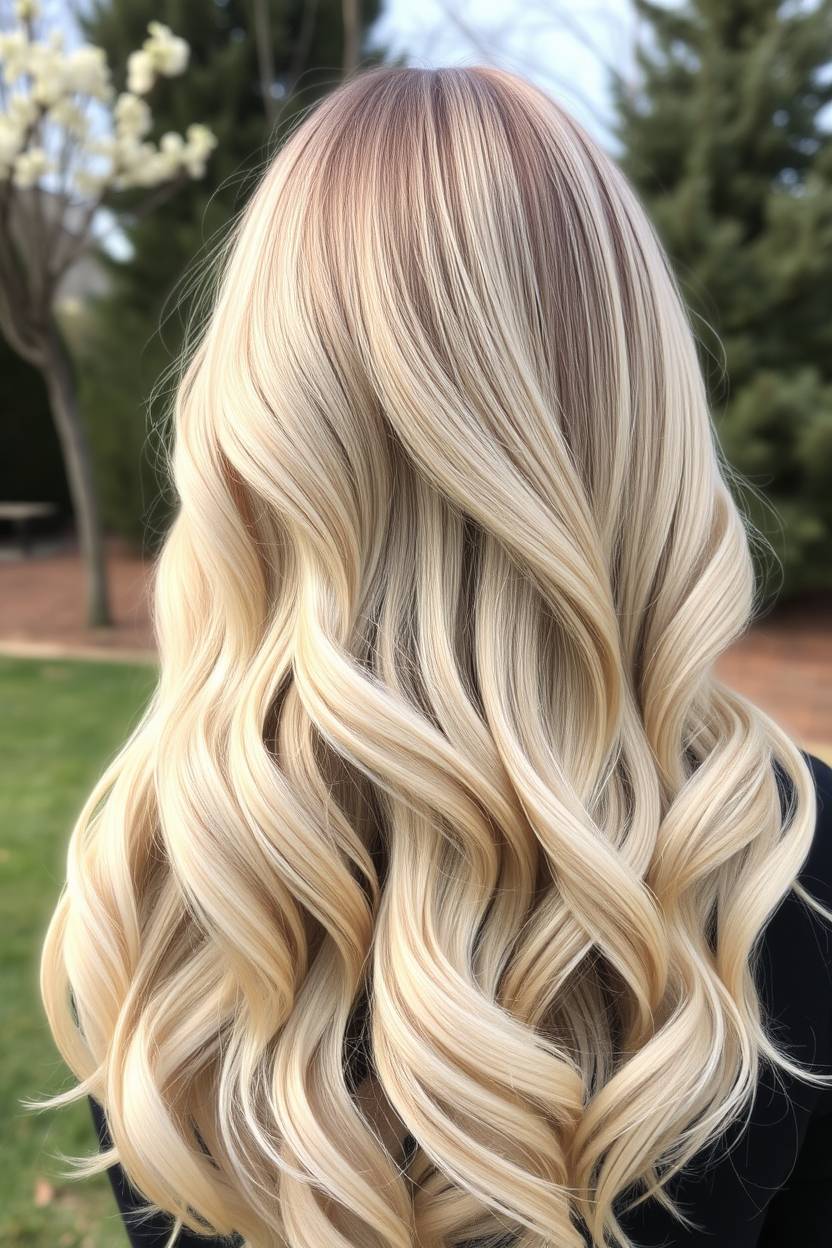 It’s very ash-toned, but the champagne gives it a softness that keeps it from being too gray. I’ve found this look really works well in colder months when you want your hair to match that frosty aesthetic. Definitely use a color-safe shampoo and avoid hard water if you want this tone to last. And hey, if you ever feel like your blonde is looking too warm, this is the perfect reset shade. Cool, calm, collected—just like your dream self.