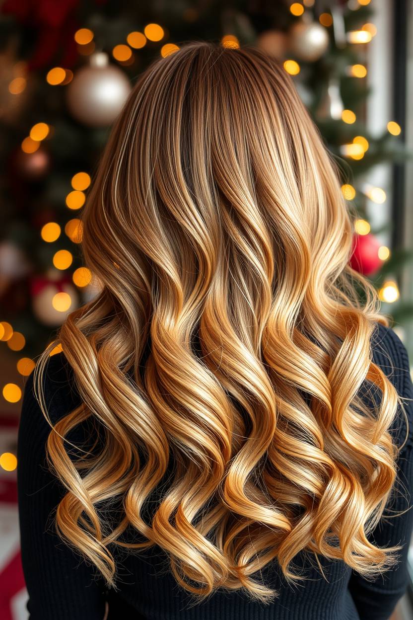 Honey Champagne Balayage is warm, sweet, and so flattering on deeper complexions or warm undertones. I worked this into a holiday lookbook and paired it with soft curls—it looked so festive and chic. Honey adds that syrupy richness to the champagne base, giving it depth.