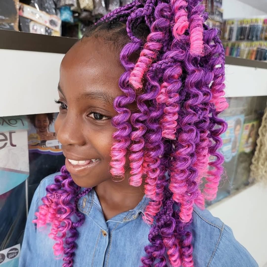 Colorful crochet braids will enable children to have fun with bold hair colors with no chemical dyes. Synthetic extensions in vibrant colors such as purple, pink, or blue are crocheted and looped in the natural hair to use. The style suits best at a party, holiday, or for an everyday casual appearance. It is durable, less prone to breaking, and it will last for weeks with good care. Parents like the fact that it is easy to install and maintain, and children will love to express their personality in color. Beads, clips, or hair ties may be added to the style, and colorful crochet braids will make a child’s hairstyle very exciting and playful.