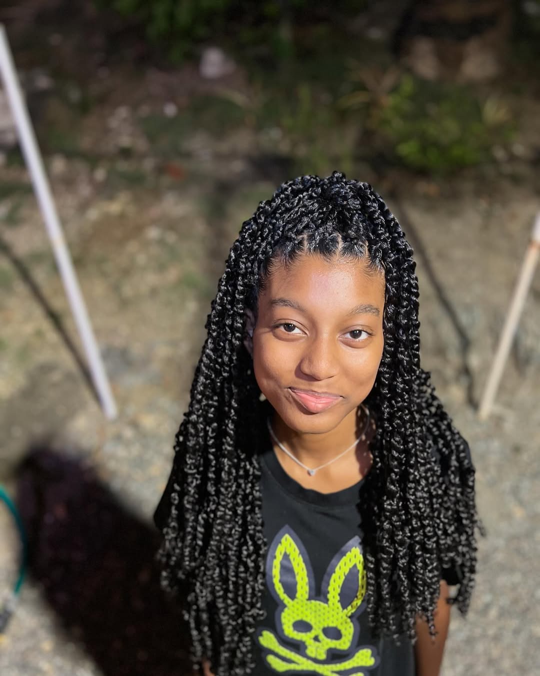 Crochet twists have a gentle appearance, and they do not hurt the hair of children. These twists are lighter and smaller than braids, so they are suitable for older children with sensitive heads. They are allowed to be in pigtails, in a ponytail, or left loose and look casual. Crotchet twists are also simple to keep and help eliminate tangles and lessen the time spent fixing hair each morning. The parents like this style to be long-lasting, versatile, and comfortable. The effect of adding beads or colored hair ties adds to the cute and playful appearance, and crochet twists are also popular as daily wear and special events.