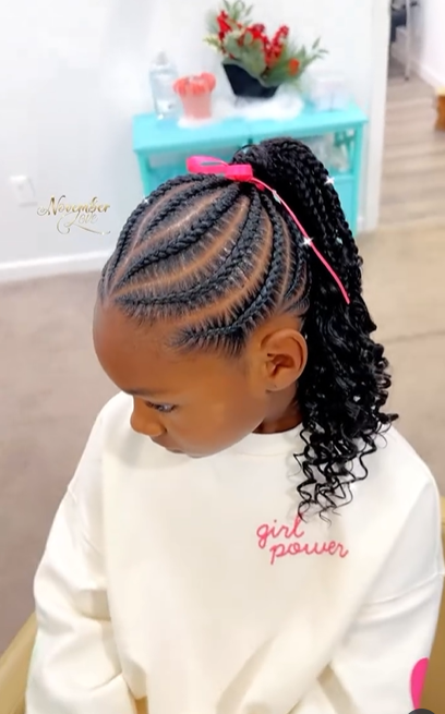 Curly hairstyles made of crocheting are ideal among children who prefer springy and swishy hair. The natural hair is lengthened with soft curly extensions that are attached using crochet techniques to provide instant volume and movement. This style is not heavy, can be handled easily, and it gives a light, jovial appearance that is ideal during parties or casual days. Bows or clips can be used to create curly hair. It preserves natural hair and gives it a full and natural look. It is easy to maintain; it is enough to moisturize and loosen the curls, and the children can play in the curls without causing any pain or harm to their own hair.