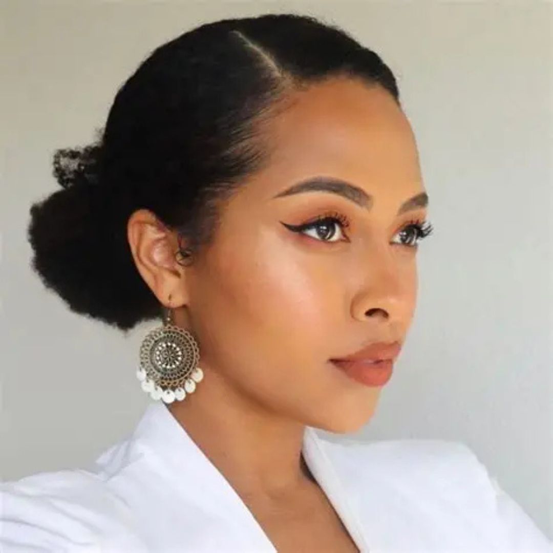 Bring your hair to one side and loosely braid it, after which you can put it into a little bun on one side. This is a romantic and elegant side-swept bun of hair. It is best on medium to long black hair and is secured for the entire day. You can also put small decorative pins, such as gold or silver, so that it appears more like a festival. It is ideal whenever you want to have dinnecelebrateate a party, or even have family portraits during Christmas. Also, it is comfortable and keeps your hair tidy,y and at the same time is stylish.