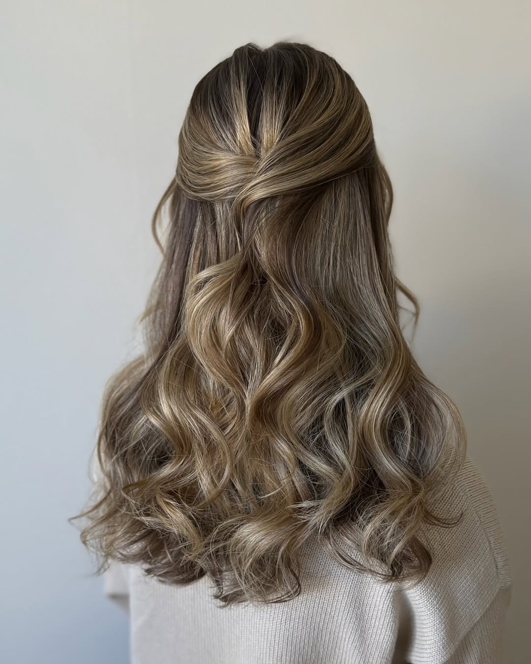 Half-up twisted hair is easy, stylish, and ideal when showing off your hair and at the same time manageable. One should take two tiny pieces each on either side, turn them around to the back, and hold them in place with a shiny clip or barrette. The rest of the hair may be left straight, wavy, or curly. The style can be used in short, medium, and long hair. Adorn with holiday pins or microscopic glitter to have the feeling of a holiday. It is suitable and ideal for family events, office parties, and casual events as it is elegant yet simple. Half-up twists leave the hair off your face and yet provide a carefree, stylish look during a holiday.