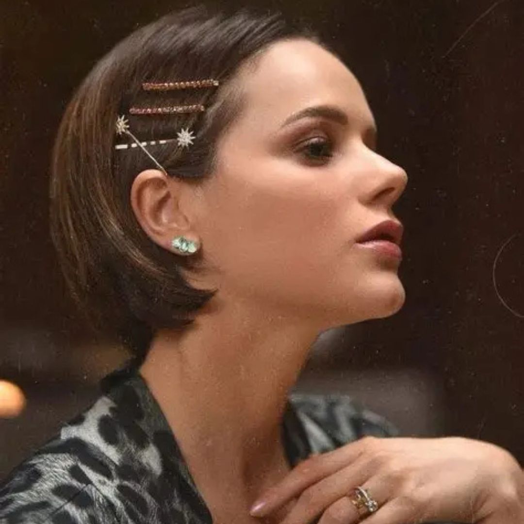 A: Little metallic clips, jeweled pins, bows, headheadbandsand celebratory hairpins (such as stars or snowflakes) are ideal. They provide glitter and do not burden the short-haired hair and instantly boost a hairstyle.