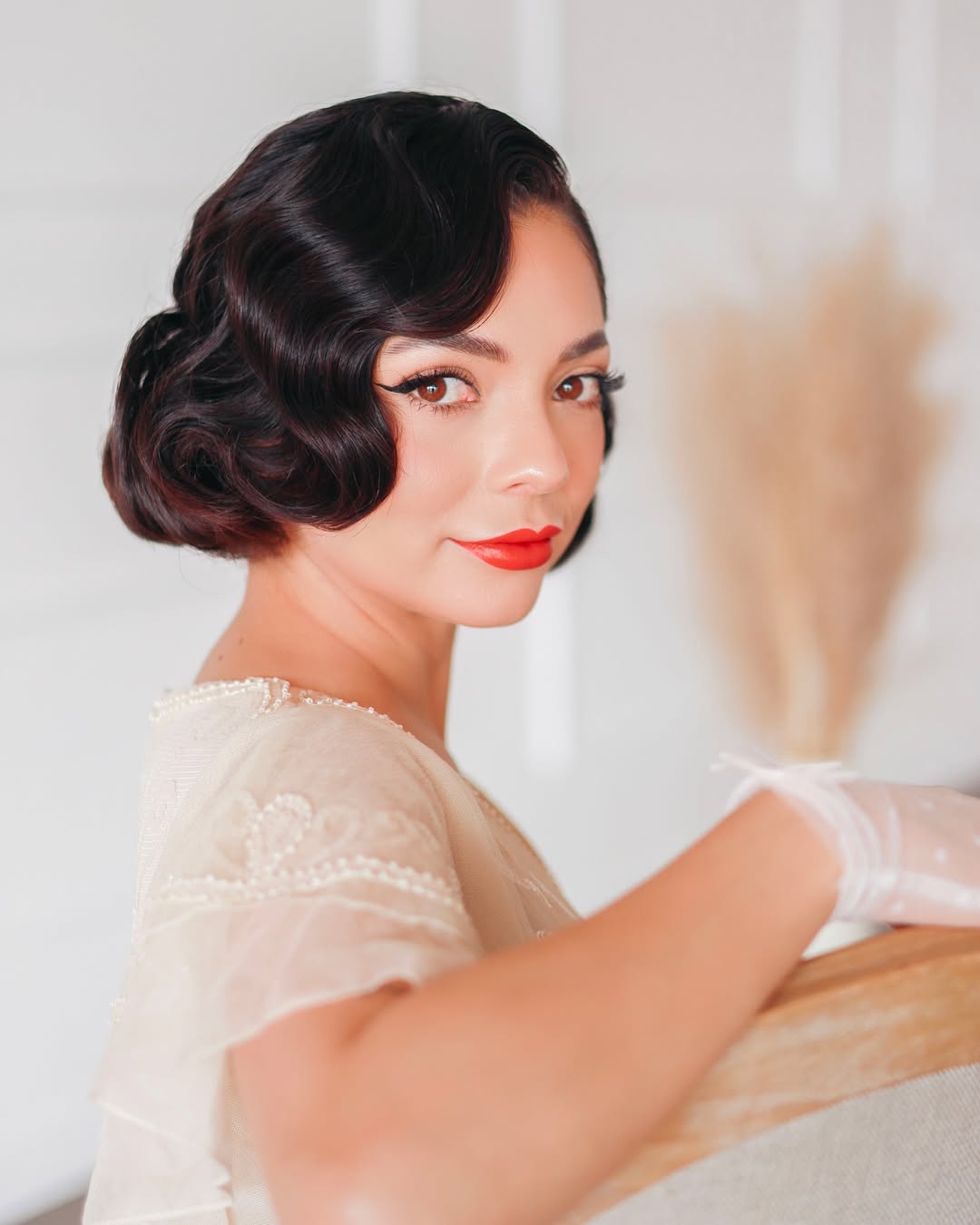 Short hair looks glamorous and retro courtesy of finger waves. It suits best on chin-length bobs or longer pixies, so that it would be used at formal Christmas parties. Place your S-shaped waves on a gel with a strong-hold using your fingers and a comb. Fasten with bobby pins and use shine serum to make it last longer. Wear heavy red lipstick or daring earrings to complete the old-Hollywood look. Finger waves are graceful, classic, and ideal to create a classy impression, though it takes time. This hairstyle will be a masterpiece of the vintage festive style, turning short hair into a masterpiece.