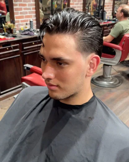 The slick-back taper is a sophisticated type of hair in which the hair on the top of the head is pulled to the back with a styling gel. The tapered walls maintain the appearance clean and balanced, and the slicked-back head gives it a bit of elegance. This is an ideal haircut that suits business meetings, evening events, or formal events. It is most effective with medium-length hair on the top and straight or slightly wavy hair. Pomade or gel can be used to achieve a slick, glossy look that lasts a day.