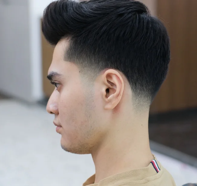 This dressy alternative incorporates the traditional taper topped with a full-bodied quiff in the foreground. The hair is pulled up and a bit behind to provide tallness and dimension to the appearance. The sloping side whiskers ensure the cut is kept tidy and orderly, and the quiff is offset by its boldness. This type of style is appropriate to men who love to have a fashionable and classic look. It is effective on thick hair and needs a blow dryer and styling product to hold up the volume and shape when needed throughout the day.