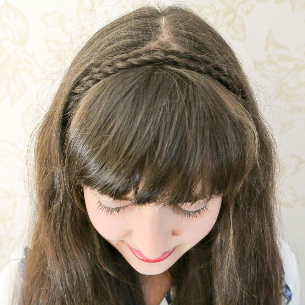 Cut small pieces in front of each side, twist and stick them in the back using a claw clip. Frame your face with some baby bangs to look cute. This is a great hairstyle to wear during casual or vintage-inspired events, and it creates a soft and feminine look. It has a twisted crown that provides the hair with structure and keeps it out of your face without appearing to be styled. The hairstyle is young and playful with the help of baby bangs. Fits well with medium-length hair and suits even straight or slightly wavy hair. Ornamental claw clips can be used to make it pretty.