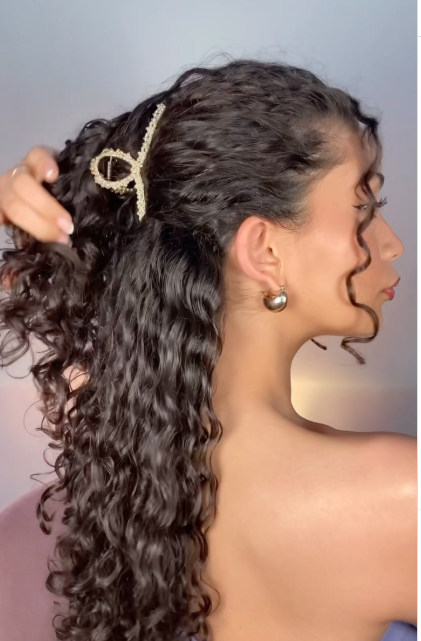 Curly Hair Half-Up Claw Clip Style