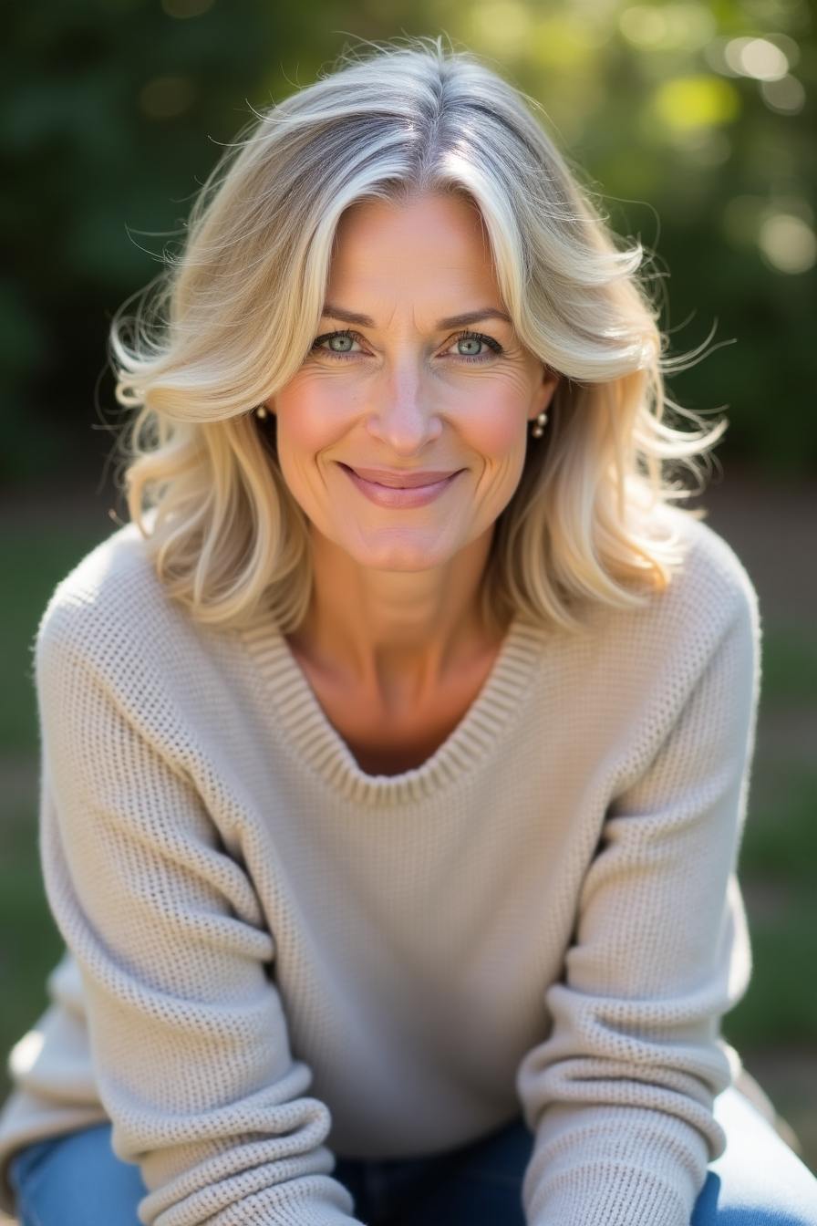 Mushroom blonde is a muted, earthy blonde tone with cool undertones that blend well with gray strands. This sophisticated shade looks stunning in softly layered or shoulder-length styles.
