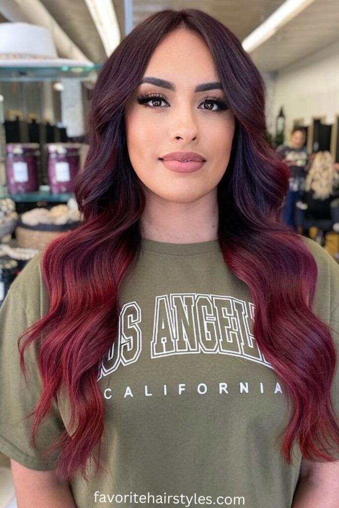 Dark Cherry Hair Color looks striking as an ombre, especially when it fades from a deep burgundy root into a cherry-red finish. This style is perfect for adding bold contrast without fully committing to all-over color.