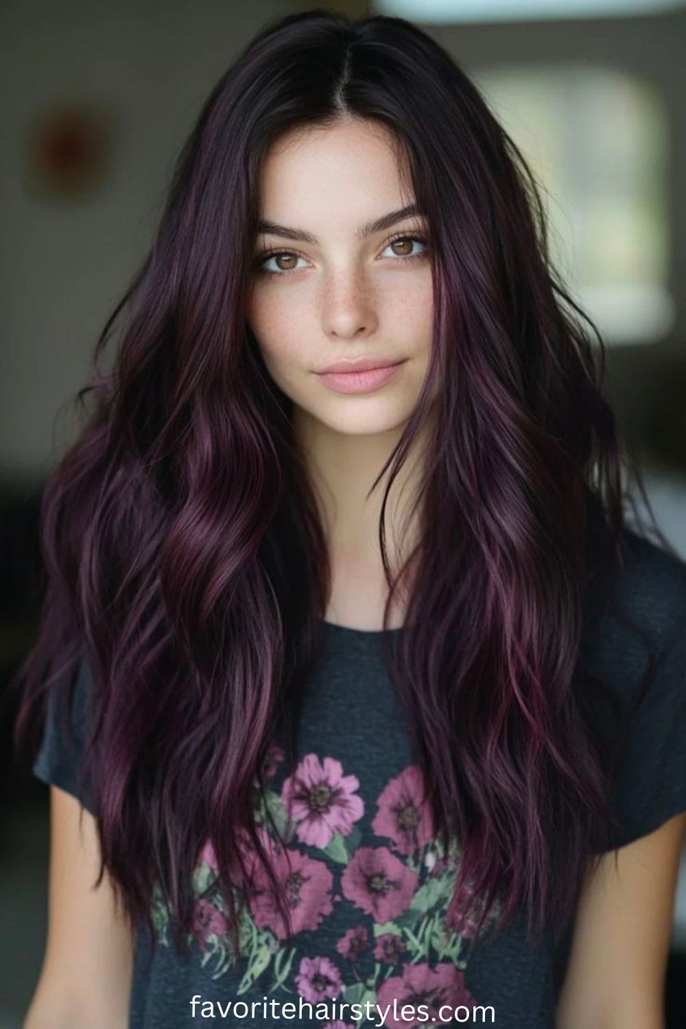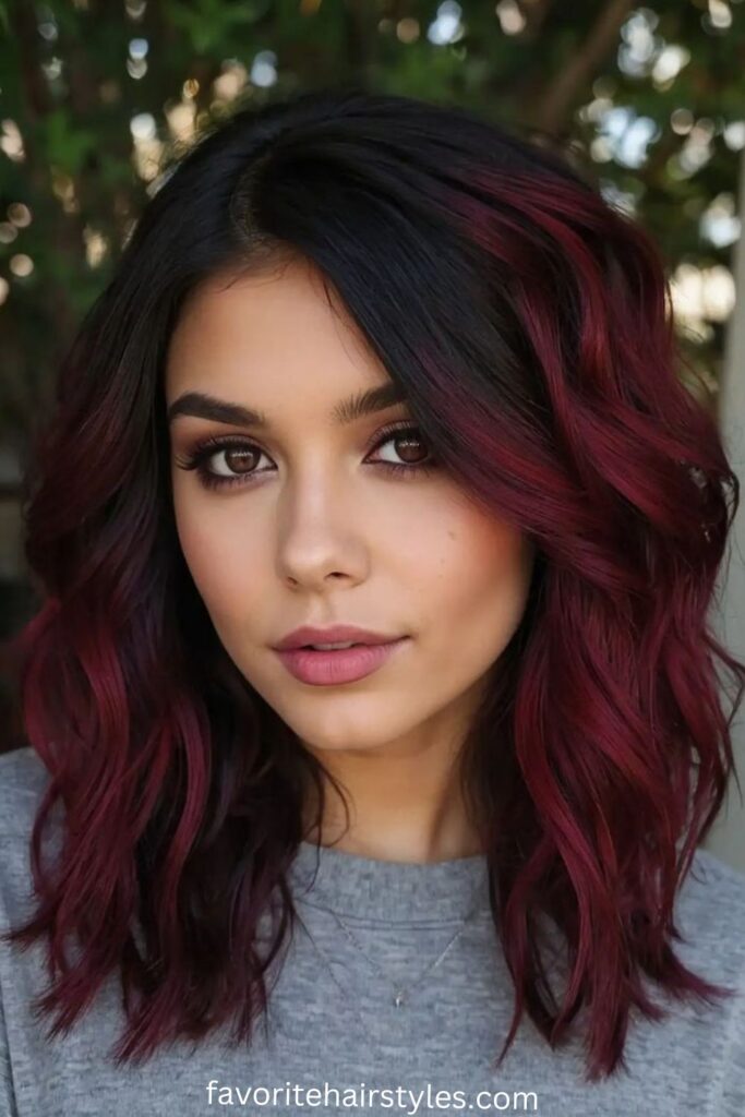 Dark Cherry Hair Color Burgundy is a bold, luxurious hair color trend that’s stealing the spotlight in 2025. This captivating shade combines deep red, rich wine, and subtle purple undertones to create a multidimensional hue that looks both sultry and sophisticated. The depth of burgundy adds intensity, while the cherry tones give it a vibrant twist that flatters a wide range of skin tones. Its versatility and richness make it a favorite for those wanting to elevate their look with a dramatic yet refined color. Whether worn on long waves, sleek bobs, or textured curls, dark cherry burgundy brings warmth, depth, and a touch of mystery to any hairstyle.
