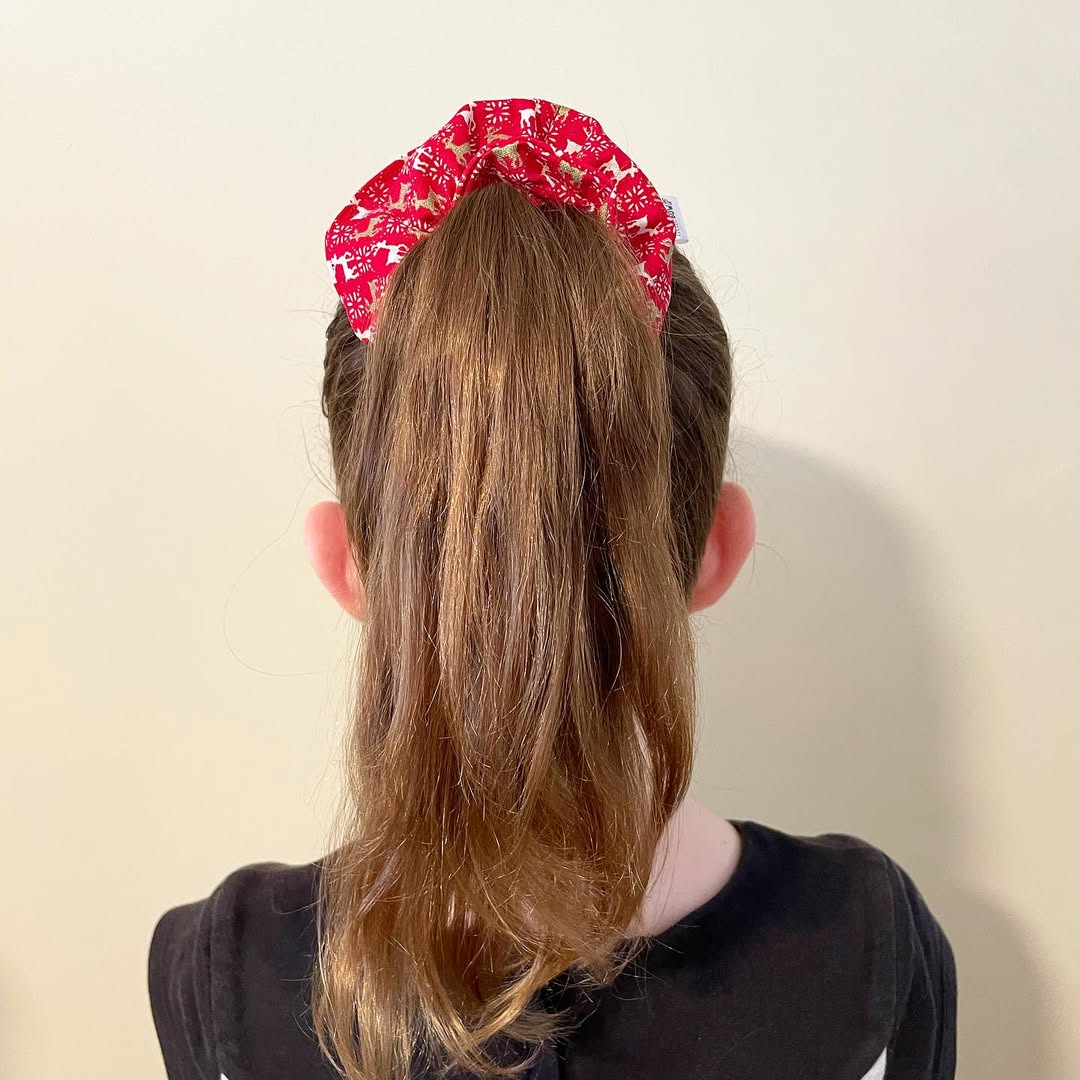 A ponytail with a scrunchie is a good idea in an attempt to get a Christmas hairstyle easily in a short period of time. You can put it in a high ponytail and have a festal scrunchie in red, green, gold, or silver. Bend the ends in case you want a less curled look. Scrunchies are non-slippery and manage your hair throughout the day. A clip or even a bit of glitter spray is also possible to add to it to make it festive. This style can be completed in less than five minutes, and it is ideal when one is in a hurry in the morning, during the holiday season, or attending school.
