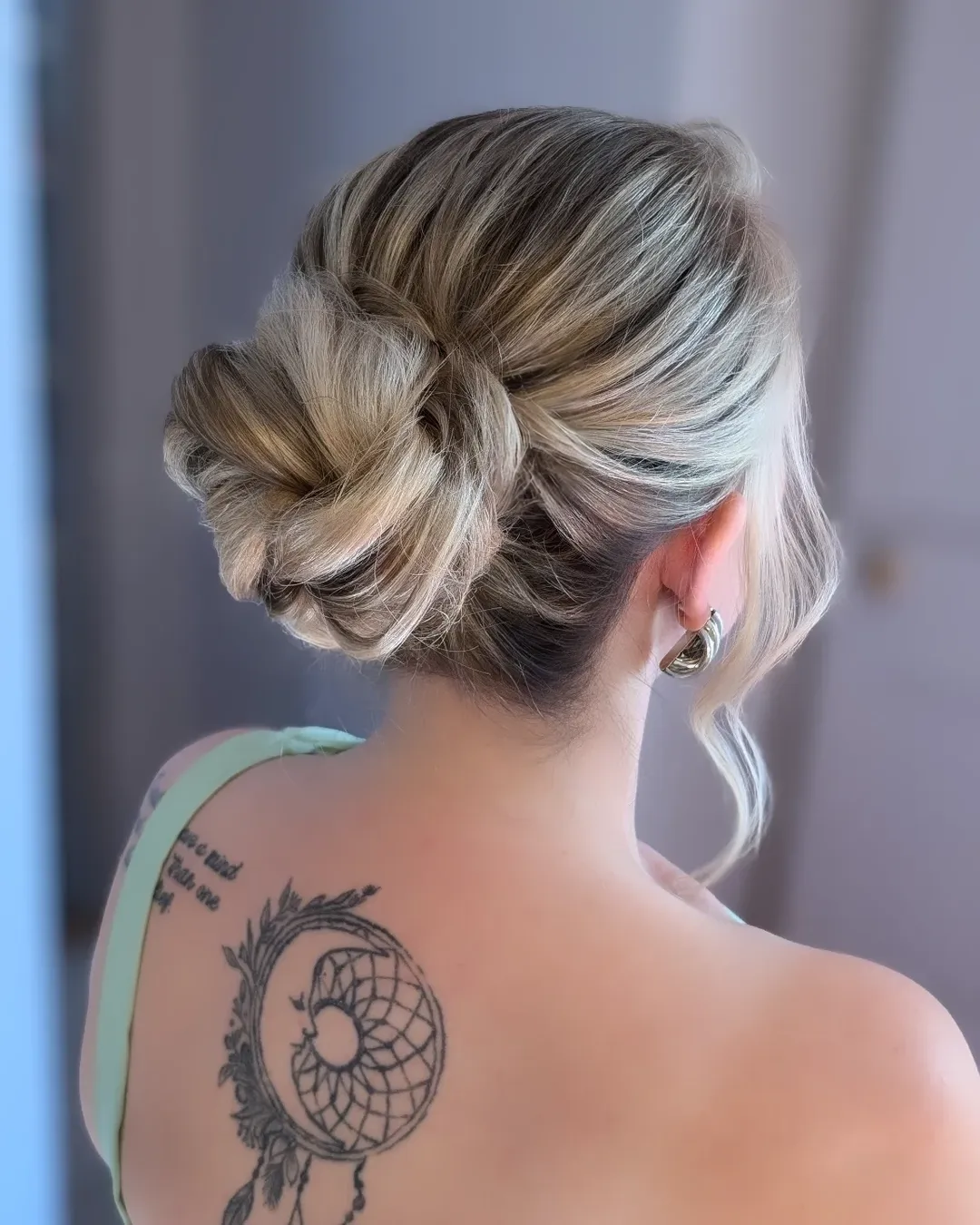The big and high-top bun is on the crown of your head and gives you an immediate, youthful, and trendy appearance. In order to reach this look, you should draw your hair upwards, spike it, and then make coils, fasten it with Bobby pins or a hair tie. High buns bring out the best in your face and make the neck length,y and are perfect in instances of parties, formal events, or picture-perfect occasions. You may make it smooth and shiny or a little bit messy to make it trendy. This can be enhanced with accessories such as sparkling pins or hair combs when attending a party.