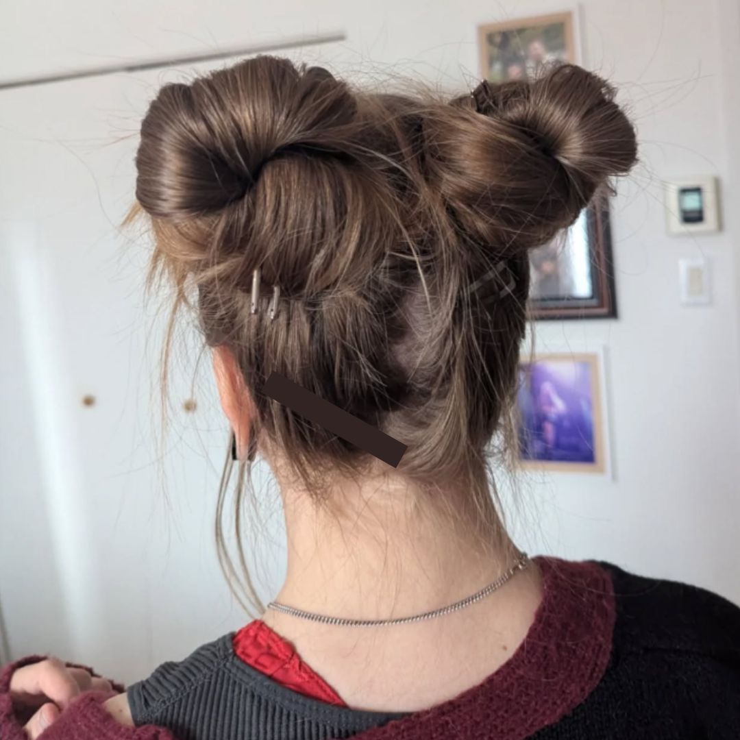 - Add extra bobby pins or a tough hair tie to hold on to your bun.