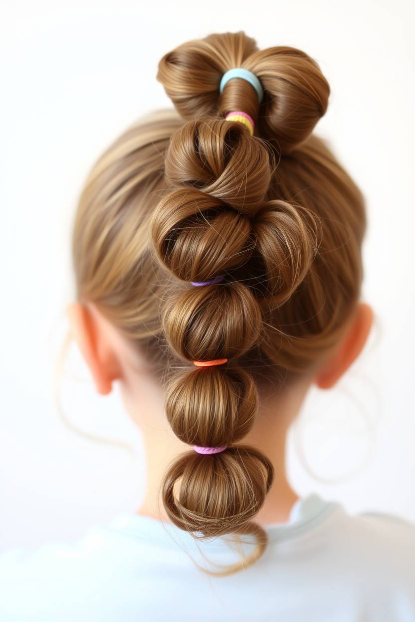 I remember one time a little girl kept walking around saying she felt like a princess because of her bubble ponytail. I’ve found that a slightly loose tension makes it look fun and soft rather than stiff. Honestly, this style is super cute for photos and playdates alike. In my opinion, bubble ponytails are a style that’s equal parts charming and silly—kids always love the bounce.