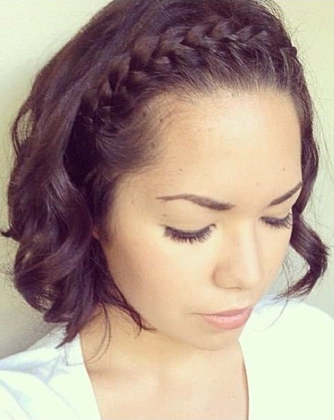 The single French braid is a simple, but beautifully fitting, short hairstyle. Begin at the top and plait down the back. Although you may have hair that is long up to the chin, you can use a small elastic or bobby pins to keep the ends in place. The style keeps hair tidy and in place all day. It is ideal to use in school, the office, the gym, or even casual outings. To make it look thicker, pull the braid tenderly to make it seem fuller. Spray a little hairspray to fix the style and deal with any short layers or flyaways.