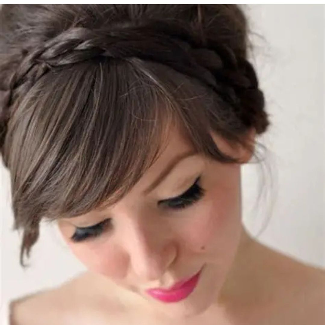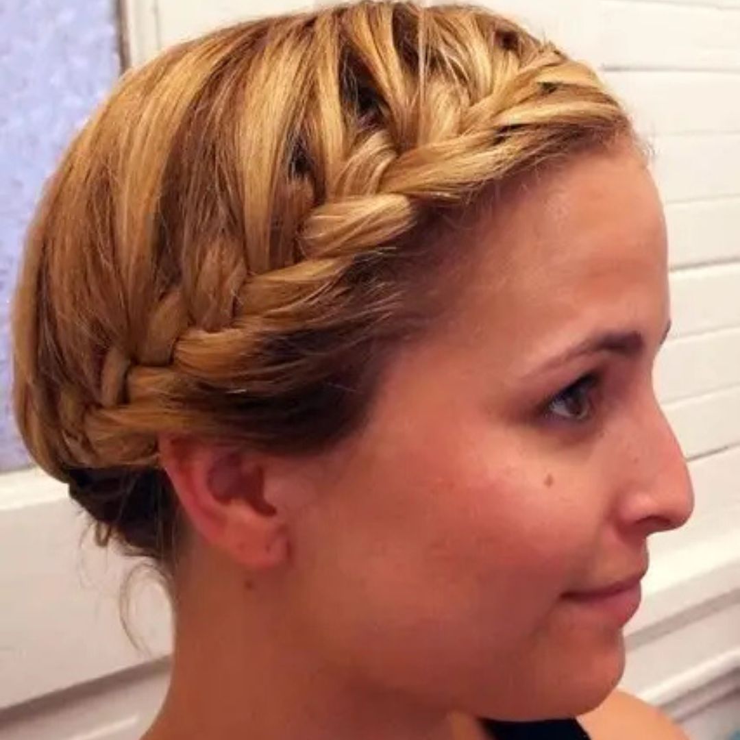 French braid headband is convenient and fashionable. Begin to braid on one side of the temple and cross across your hairline to the opposite sidewhichit gives the effect of a headband. This is a stylish appearance that keeps the hair in front of your face out of the way, even though it provides a small braid effect. It works particularly well on short hair with a fringe or a cut. Use bobby pins to fasten the ends behind your ears. The hairstyle is good on a hot summer day, when an individual is in the office, or even during a special event. Combine it with frizzles to create a feminine and graceful touch.