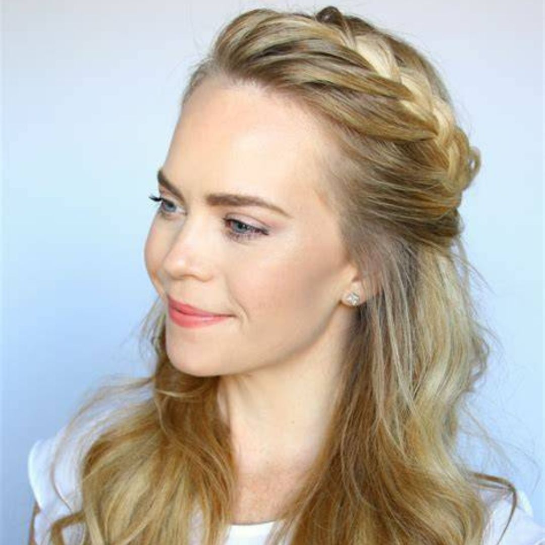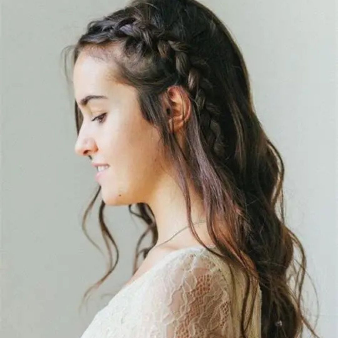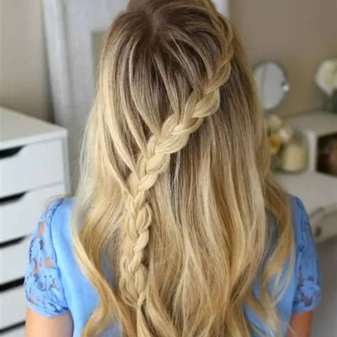 In this style of hairstyling, the French braid is started at one side of the forehead and cuts diagonally towards the other side of the head. The braid merges with the open hair at the back and presents a special and noticeable appearance. It is not only a twist on the usual braid but also a contemporary one, and it is suitable for both informal and official events. The open hair can be done straight or can be curled to give the appearance more drama. It is stylish hair, and it especially suits long hair.