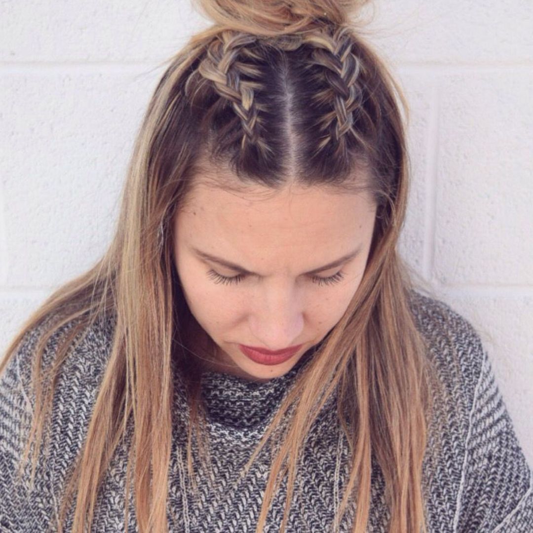 Two small French braids are made on each side of the top part of the head in this trendy style. These braids are fixed at the back or held aside, and the rest of the hair is left open. This is a young and coy appearance that fits the teenagers and young women. It gives depth and volume to your hairstyle. I can leave the open hair straight or curled to add volume. It is very useful on informal occasions and alone time with friends.