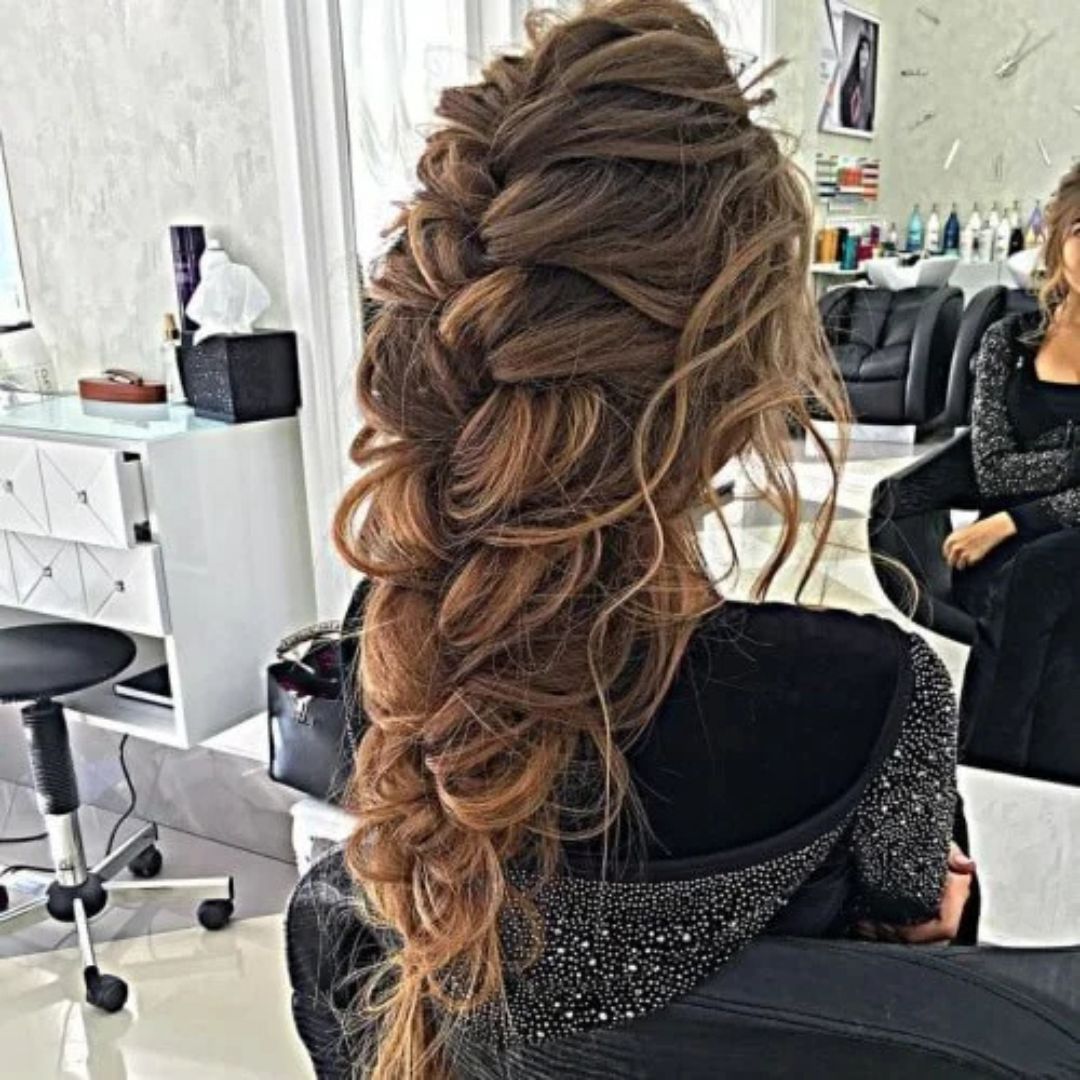 This hair starts with one French braid on one side of your head, normally around the temple. The braid is diagonally flowing at the back, and the rest of the hair is left open with loose waves. It also appears romantic and feminine, and thus it can be worn during parties and dinner dates. Loose curls are also added to add beauty to this style. It puts the face into a beautiful perspective and gives thin hair volume. It is also possible to unbraid it loosely to make the braids look more boho-like.