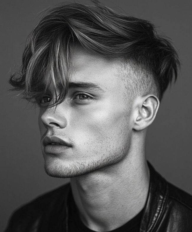 The front haircut is dishevelled and fashionable. The hair is cut in layers and is arranged loosely in a natural, slightly unkempt style. The style is ideal among the boys who like the carefree and cool atmosphere. It is suitable in the middle length hair as well as most face shapes. A little bit of styling cream would provide texture but not make the hair hard. The sloppy appearance is simple to maintain and does not need flawless fixing, which is practical during hectic mornings.