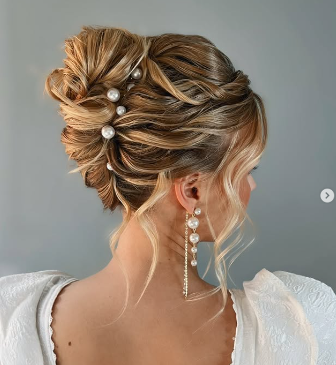 The French twist isana advancehairstylele in weddings, which can be worn by a woman with volumized hair. At the crown, height adds length to the face and makes it appear sophisticated. This hairstyle suits well with the fancy dresses and old-fashioned wedding rings. The appearance is not too strict, as soft strands are located around the face. It suits the brideswhot like a classic, elegant, and refined bridal hairstyle.