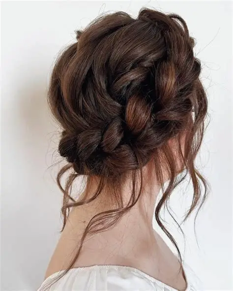 The hairstyle of a braided crown gives a romantic and princess-like appearance that is ideal for gala events. Under this style, the hairstyle is wrapped around the head in the form of a crown, with braids providing a beautiful and unique look to the hairstyle. It suits medium and long hair and provides volume and glamour to the entire appearance. Such a hairstyle is perfect at a formal wedding party that has a soft or romantic theme. To make the braid more ornamental, you can add small flowers, pearl pins, or sparkly accessories. The braided crown ensures that the hair is in place and, at the same time ite appears elegant and stylish.