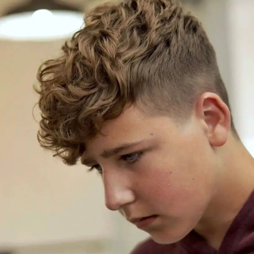 Among boys who have naturally curly hair, it is a cool and convenient option to leave the curls on top and cut the sides short. This haircut allowforng natural texture, but at the same time, it is clean. The sides are shorter and do not make the hair appear too thick. Light curl cream is used to bring out the curls and to counter frizz. It is a good-fitting style that boys choose to adopt their natural hair texture and still have it under control at school. It puts some personality into it without being against school rules.