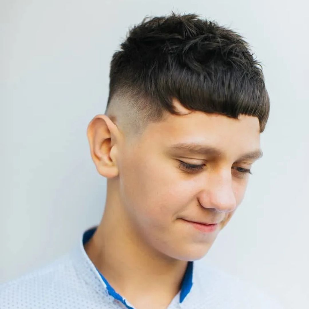 The taper cut is done progressively, trimming the hair up the neck and sides but leaving more on the top. This gives it a smooth and blended appearance that is clean and fashionable. It is not as dramatic as a fade, yet it still provides a contemporary touch. The taper cut fits most types of hair and most shapes of the face; thus, it is a flexible choice. It may be dressed in various ways that one wants. This is a haircut that is ideal for boys who wish to have a moderate haircut that is stylish and yet suitable for school.